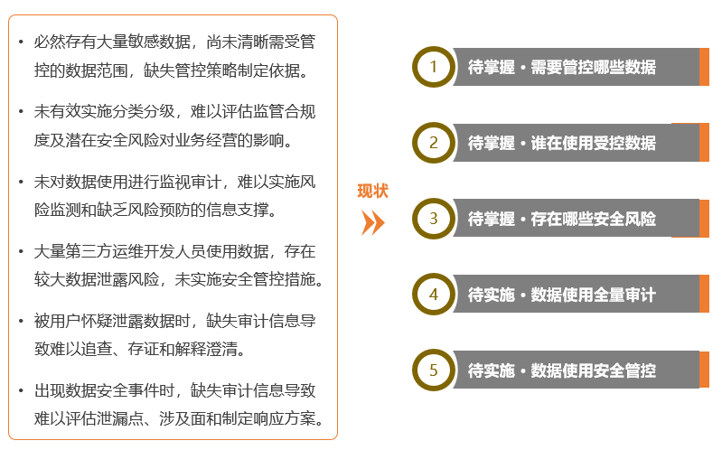 陈年老系统、多年老代码、缺乏规范的开发、散布在不同业务下的不同数据库,让事后排查安全事件消耗大量人力。同时,外部合作伙伴的数据合作也不会由于数据流通让责任转嫁,合作伙伴的数据给予以及数据保护依然是重要的一环。数据安全事件发生后,安全团队能否立刻召开追踪溯源工作,复原安全事件的整个过程,找到造成数据泄露的原因成为不确定因素。
