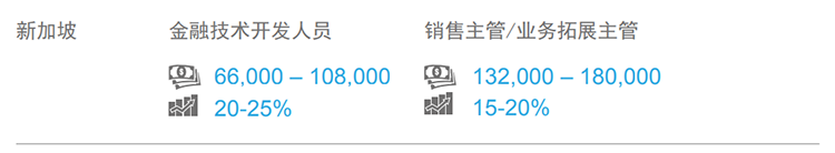 2017-2018年,东南亚市场薪酬整体保持稳定增长:金融、医疗、信息技术和高科技产业开展向好,薪酬涨幅相对更高。从地区看,新加坡薪酬的薪酬涨幅水平相对较低,跳槽涨幅在10-15%。(文中部分数据是北京知名猎头公司yl23411永利国际专家顾问的分析预测,供企业HR和猎头参考)